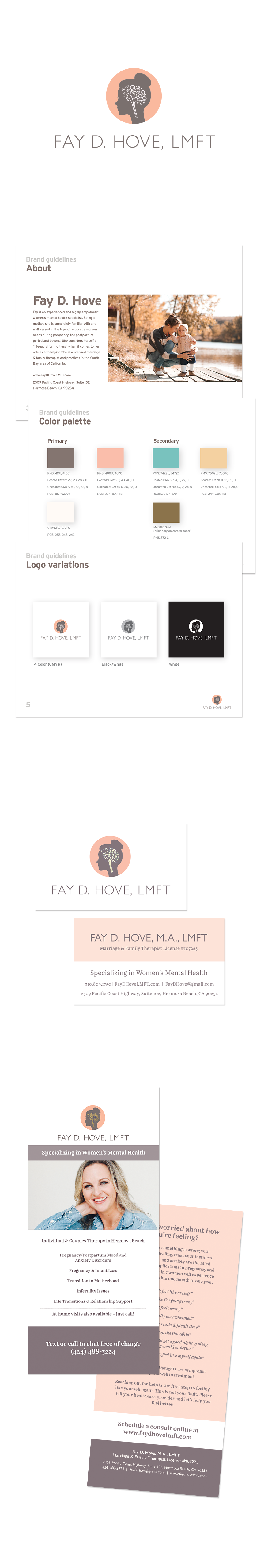 Creative and design for a women's health mental health professional logo and branding. Our goal was to reflect that she is a mother of young children and can relate to her clients while being a discreet professional.